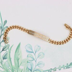"Elegant Rose Gold Greek Key Bracelet with Crystal Detailing, XPBL0922