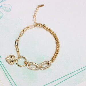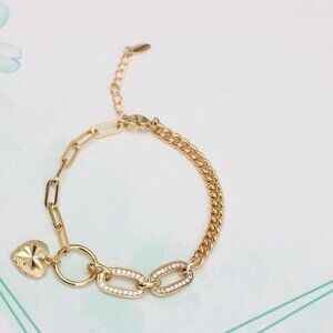 " Elegant Rose Gold Heart Charm Bracelet with Sparkling Link Design, XPBL0644 Gold plated over high-quality brass. Rose Gold Bracelet. Size: 17cm (6.7 inches). ✔️ Beautiful heart charm detail adds a romantic touch ✔️ Sparkling link design for a luxurious and eye-catching style ✔️ Adjustable fit with secure clasp for comfort and ease ✔️ Premium quality gold plating over durable brass material ✔️ Lightweight and perfect for daily wear or special occasions"