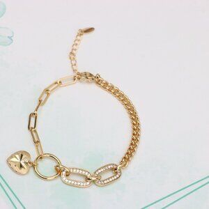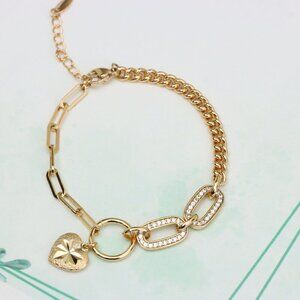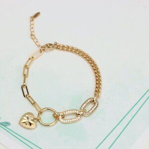 " Elegant Rose Gold Heart Charm Bracelet with Sparkling Link Design, XPBL0644