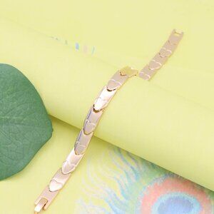 "Elegant Rose Gold Heart Link Bracelet in Glossy Finish, XPBL1124