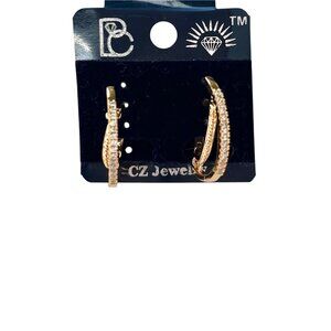 Add a touch of modern elegance to your look with these rose gold-tone hoop earrings adorned with dazzling stones. Designed for both everyday wear and special occasions, these hoops are lightweight, comfortable, and effortlessly stylish. Whether you're dressing up for a night out or adding sparkle to your daily outfit, these earrings are the perfect accessory.