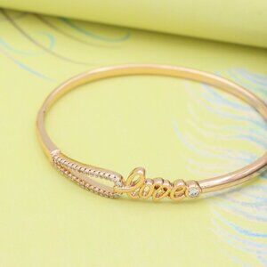 Elegant Rose Gold ""Love"" Bangle with Sparkling CZ Accents, XPBL0582