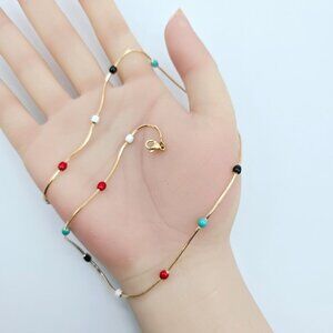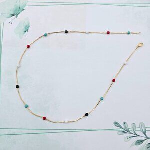 "Elegant Rose Gold Necklace with Multicolor Beads, XPNL0116