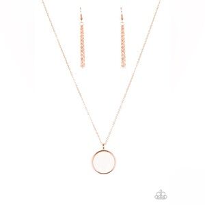 Copper features a flat shell-like pendant on a shiny copper chain. This elegant piece includes an adjustable clasp closure, perfect for any occasion. Sold as a single necklace with matching earrings, this Jewelry item is a must-have for fans of Paparazzi jewelry necklaces. Perfect for any occasion.