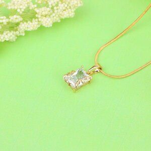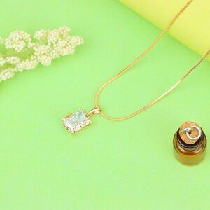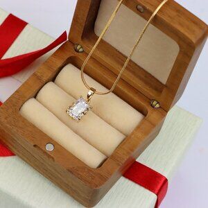 A dainty and luxurious pendant featuring a radiant rectangular crystal set in a beautifully ornate rose gold frame. A perfect piece for a refined, minimal yet striking look.
