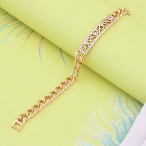 "Elegant Rose Gold Plated Filigree Chain Bracelet with Crystal Accent, XPBL0645