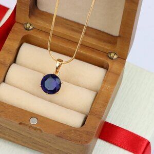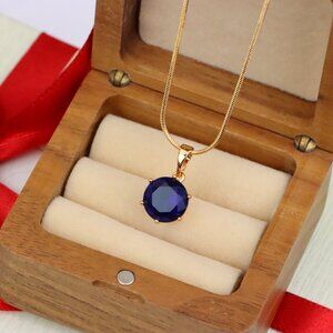 "Elegant Rose Gold Round Blue Stone Pendant for Women, XPPT1747