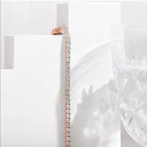 This stunning rose gold tennis bracelet adds a touch of elegance to any outfit. Perfect for any occasion.