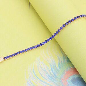 Crafted with precision and adorned with vivid blue stones, this rose gold bracelet exudes timeless sophistication. The shimmering gems and refined finish make it ideal for both casual and formal occasions.