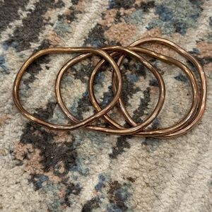 Enhance your style with this elegant rose gold-tone bangle set. Perfect for any occasion. These bangles have an artistic, wavy design. These are unique and are sure to add a touch of class to any outfit.