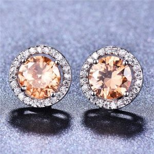 Elegant Round Cut Champagne Topaz Stud Earrings