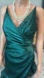 This elegant dark emerald satin dress is perfect for any special occasion. Its luxurious fabric and flattering design make it a must-have in your wardrobe. Zips on side rib.