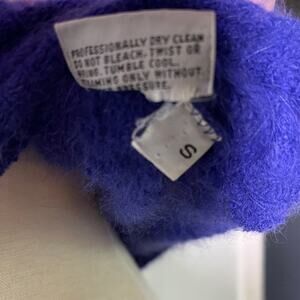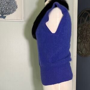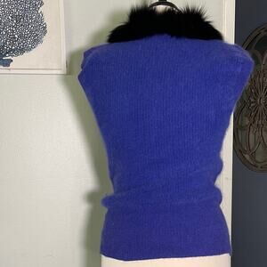 Elevate your wardrobe with this elegant royal blue sweater featuring a luxurious black fur collar. Perfect for adding a touch of sophistication to any outfit.
