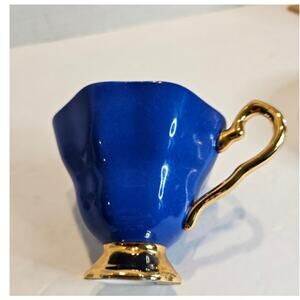 Vintage Royal Stafford England Fine Bone China Teacup and Saucer. Royal Blue cup with Gold Handle and trim. Blue Rose and Rosebud pattern. Delicate handle in elegant Gold as is trim on cup and saucer. Bright White porcelain bone china. No chips, marks or flea bites.