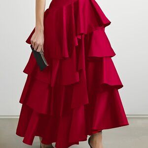 Elegant Ruffle Hem Tiered Skirt - High Waist Perfect for Womens Curvy Figure