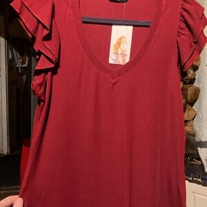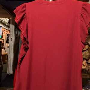 Elevate your wardrobe with this elegant blouse featuring stylish ruffle sleeves. The rich red color adds a touch of sophistication to any outfit.