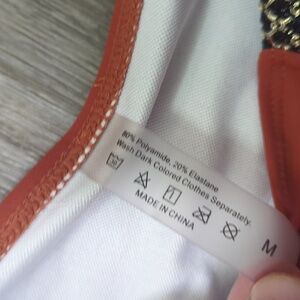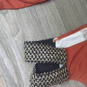 Dive into style with this elegant rust bikini set. Featuring a chic design with black and gold accents, it's perfect for making a statement at the beach or pool.