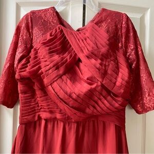 Beautiful rust lace dress with intricate detailing. Perfect for special occasions.
