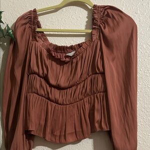 Pre Loved Add a touch of elegance to your wardrobe with this rust ruffle blouse. Perfect for both casual and formal occasions.Item is in smoke pet free home. Thank you for viewing.