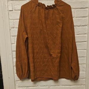 Add a touch of elegance to your wardrobe with this rust ruffled blouse. Perfect for both casual and formal occasions, it offers a stylish and comfortable fit.