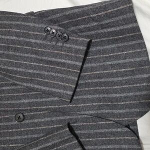 Step into sophistication with this elegant charcoal pinstripe men's suit. Ideal for formal events, it combines classic style with modern elegance. gently worn. gorgeous warm suit for fall / winter.