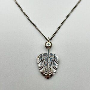 Elegant Safari Palm Leaf Pendant Necklace With Emerald Accent