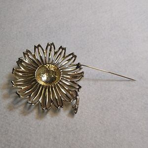 This elegant silver flower brooch adds a touch of sophistication to any outfit. Perfect for any occasion.