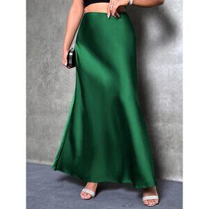 Elegant Satin Maxi Skirt for Women High Waisted Deep Green Silk Dressy Casul