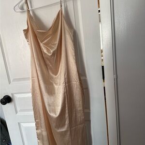 Chic satin slip dress in a beautiful champagne color. Perfect for any occasion.