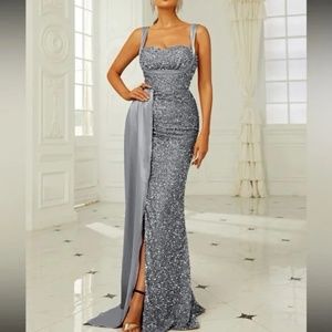 Elegant Sequin Fitted Sexy Party Formal Prom Wedding Dress