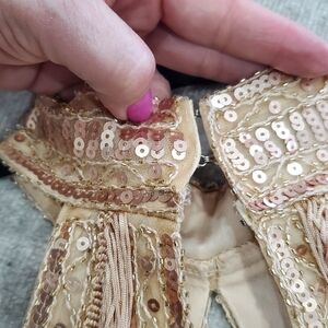 Shine in this elegant cream dress featuring stunning sequin details and fringe accents. Perfect for special occasions.