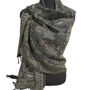 Elegant Shawl in Earthy Green- Versatile Wrap, Stole, Scarf, Veil, Soft & Cozy