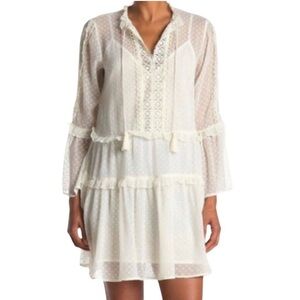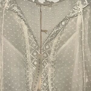 Chic sheer white dress with delicate lace details. Perfect for any occasion.