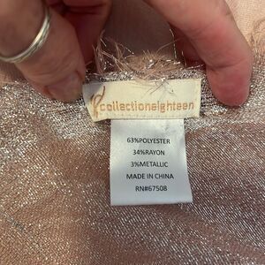 Elegant Sheer Pink Shawl with silver metallic trim 41”x76” EUC