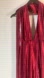 Turn heads with this stunning red evening gown, perfect for any special occasion. The tag says "L" but it fits more like an small or extra small. I can't get the zipper up in the back. The wraps can be worn at least 10 different ways that I've tried so far. The front is shorter than the back at the bottom. The dress has a lot of "give" or a little stretch to it. And it is a bit weighty though not Winter heavy.