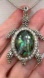Elegant Silver Abalone Style Sea Turtle Pendant Necklace