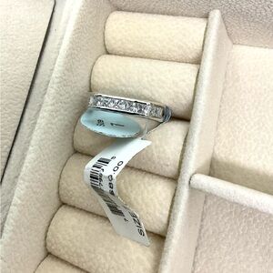 This elegant Sterling Silver band features stunning simulated diamonds. Great for vacations when you want to wear your real expensive jewelry. Ideal for any occasion.