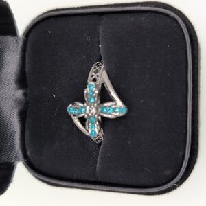 Keywords: Cross Ring, Blue Gemstone, Inspirational Jewelry, Faith Ring, Religious Jewelry, Sterling Silver Style, Ornate, Statement Ring, Christian Gift, Elegant, Classic, Timeless, Aesthetically Pleasing, Popular Design.