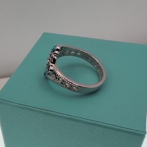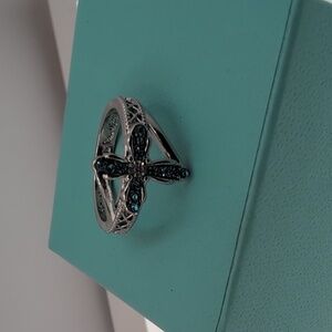 This elegant women's ring features a stunning silver band adorned with blue accents. Perfect for adding a touch of sophistication to any outfit.