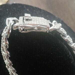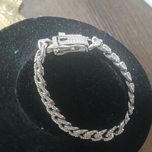This stunning silver bracelet features sparkling crystal accents, perfect for adding a touch of elegance to any outfit. Ideal for both casual and formal occasions.