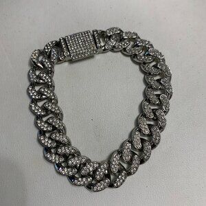 This stunning silver bracelet features sparkling crystal accents, perfect for adding a touch of elegance to any outfit.