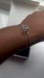 This elegant silver bracelet features interlocking circles and a sparkling accent, perfect for adding a touch of sophistication to any outfit.