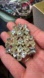Estimated age of this piece is 20s 30s Art Deco. Die cast setting with varying shaped crystals, small medium, large round and square. Unique concave design.