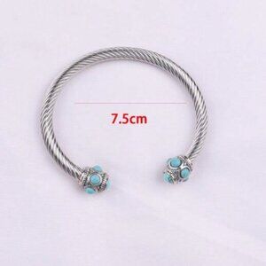 Elevate your jewelry collection with this Elegant Silver Cable Bangle Bracelet, beautifully designed with eye-catching turquoise accents. The classic twisted cable style blends modern sophistication with a pop of vibrant color—perfect for daily wear, special occasions, or gifting.