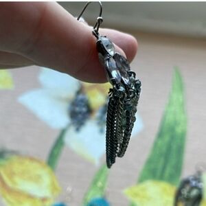 Add a touch of elegance with these stunning silver chain dangle earrings with rhinestones. Perfect for any occasion.