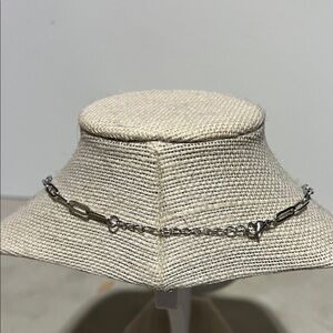 This elegant silver chain necklace adds a touch of sophistication to any outfit. Perfect for any occasion.