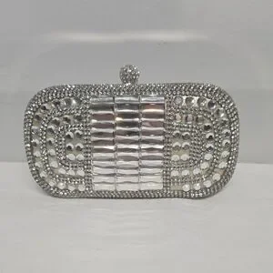 This elegant silver clutch is perfect for evening events. Its shimmering design adds a touch of glamour to any outfit.