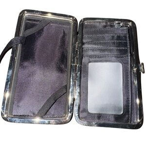 Elegant Silver Clutch Bag 5.5” X 3” With Clasp and Credit Card Holder EUC