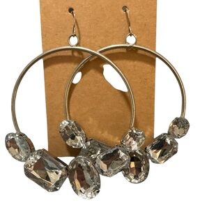 Add a touch of elegance with these stunning silver colored hoop earrings featuring sparkling crystal accents. Perfect for any occasion. Hoops are 2” round