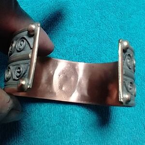 Elegant Silver Copper and Black Stone Cuff Bracelet